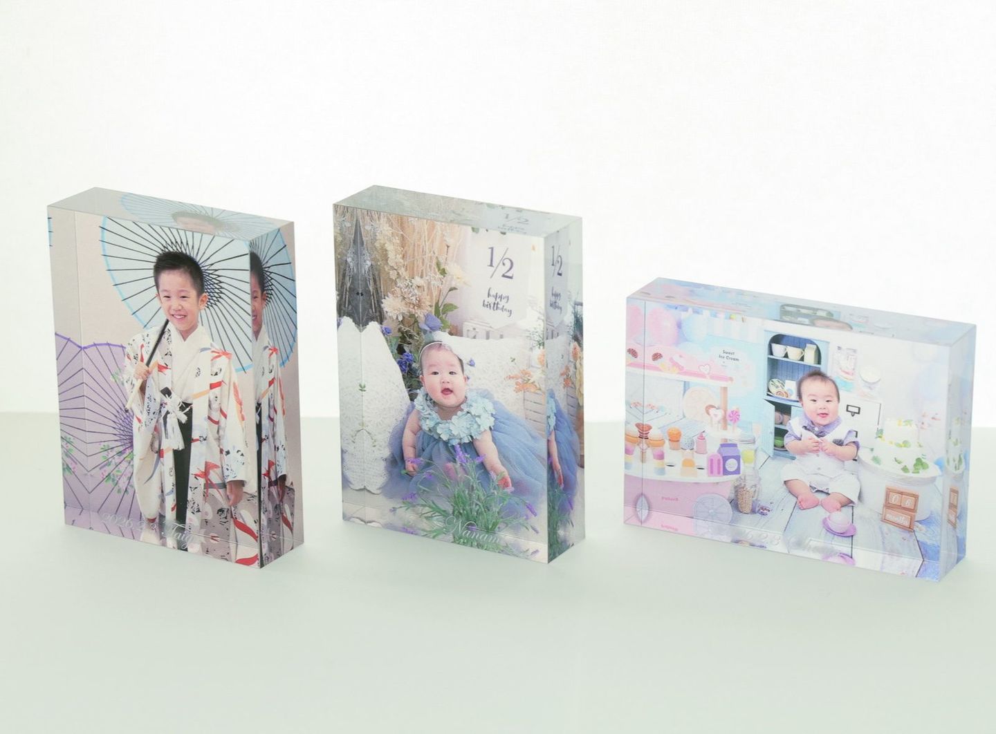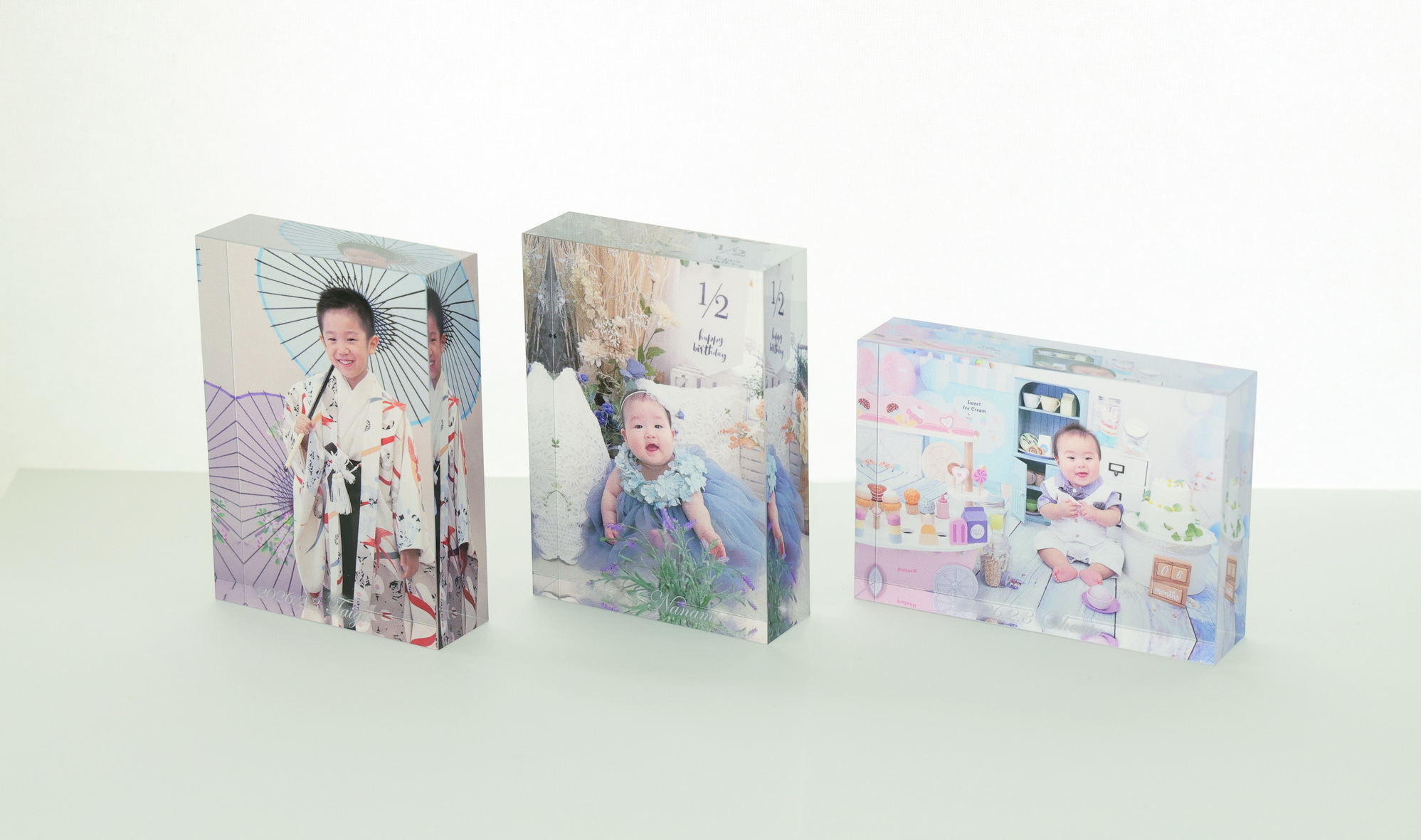 最長90㎝・フルフラットで継ぎ目の無い台紙だから、お子様の「等身大」のお写真が残せます。